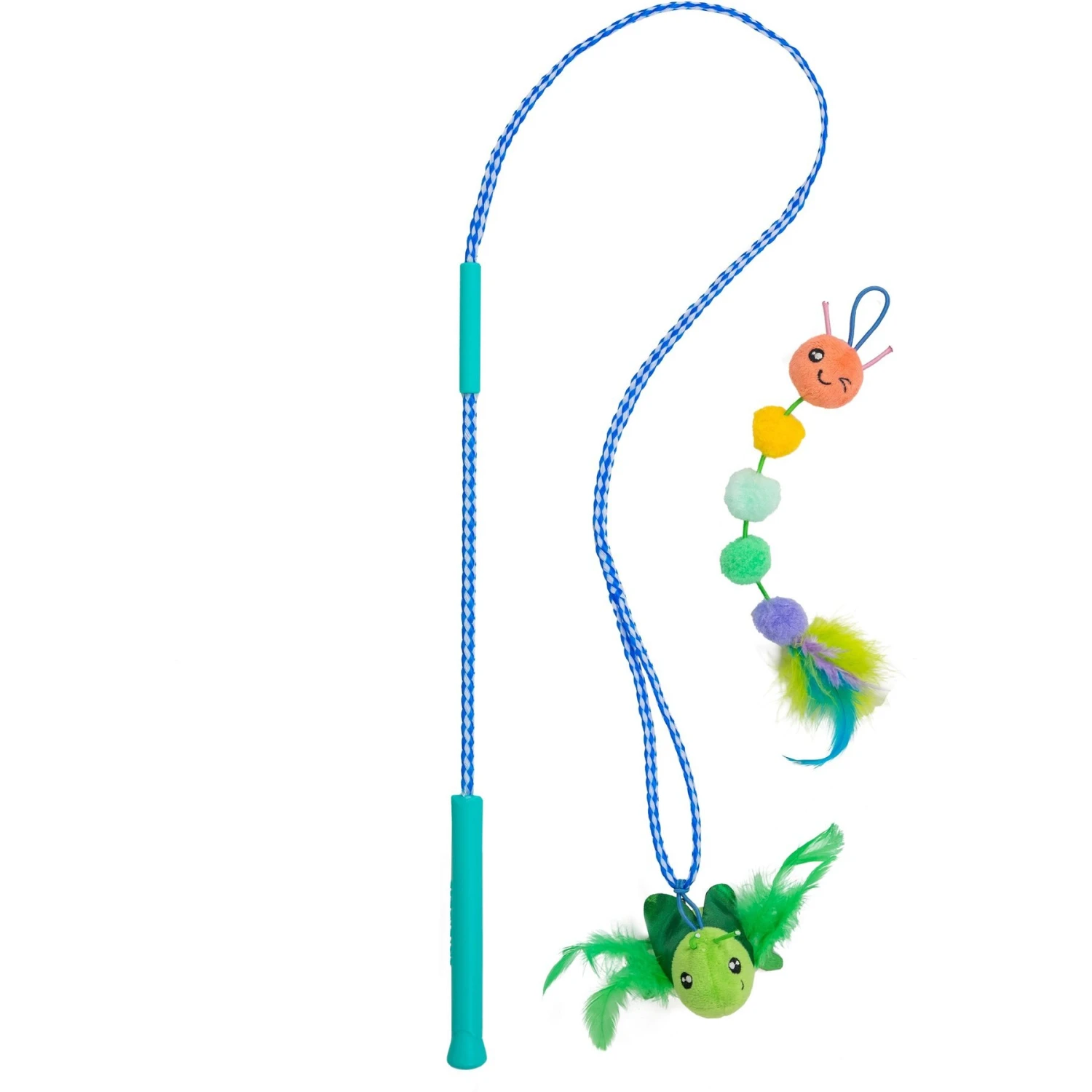 - This teasing cat wand comes with two interchangeable catnip toys and a claw-resistant nylon rope for endless play action.