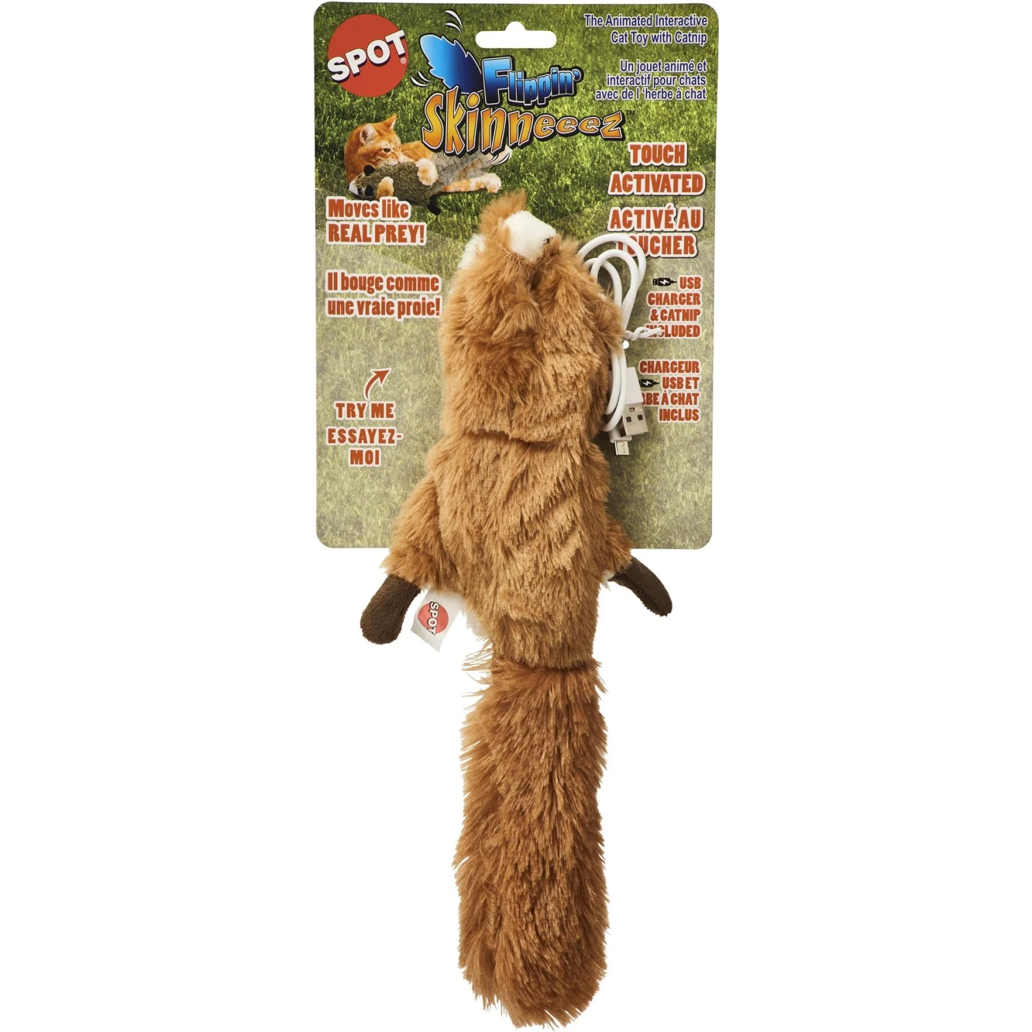 Ethical Pet Flippin’ Skinneeez Squirrel Exercise Cat Toy With Catnip, Assorted