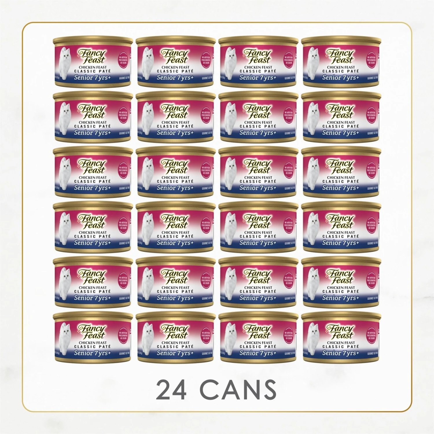 Fancy Feast Chicken Feast Pate Senior 7+ Canned Cat Food, 3-oz Can, Case Of 24