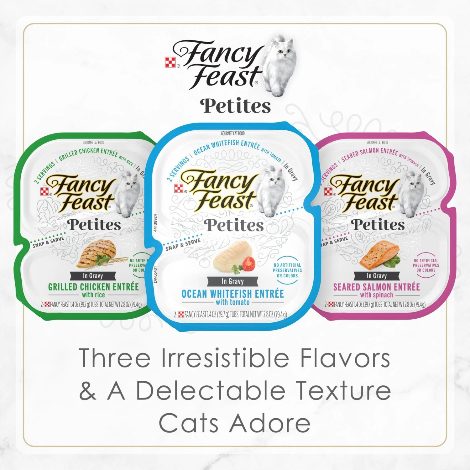 - Fancy Feast Petites single-serve gravy cat food delivers the perfect size servings.