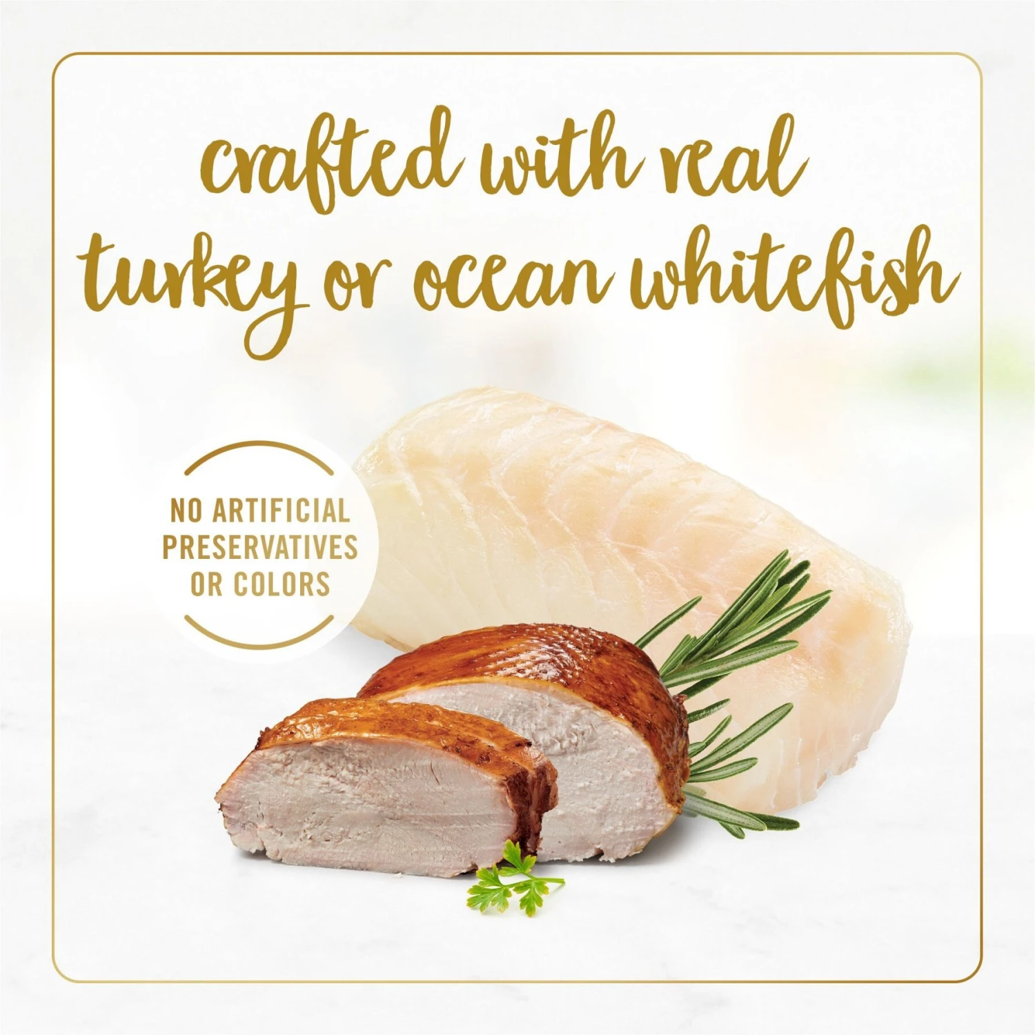 - Made with real turkey or ocean whitefish as the number one ingredients.