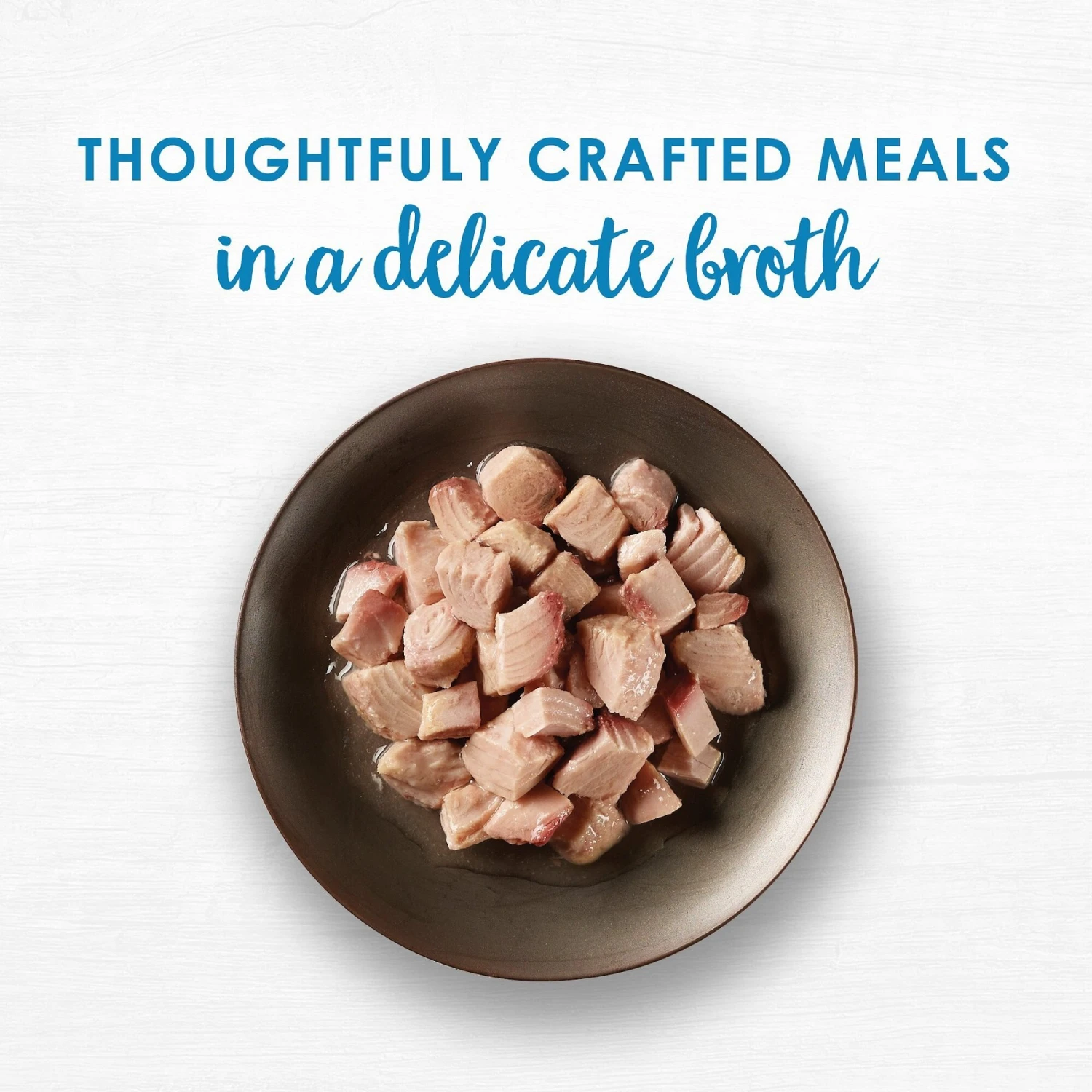 - Packed with a delicious savory broth to satisfy your feline’s craving and keep him full until his next feeding time.