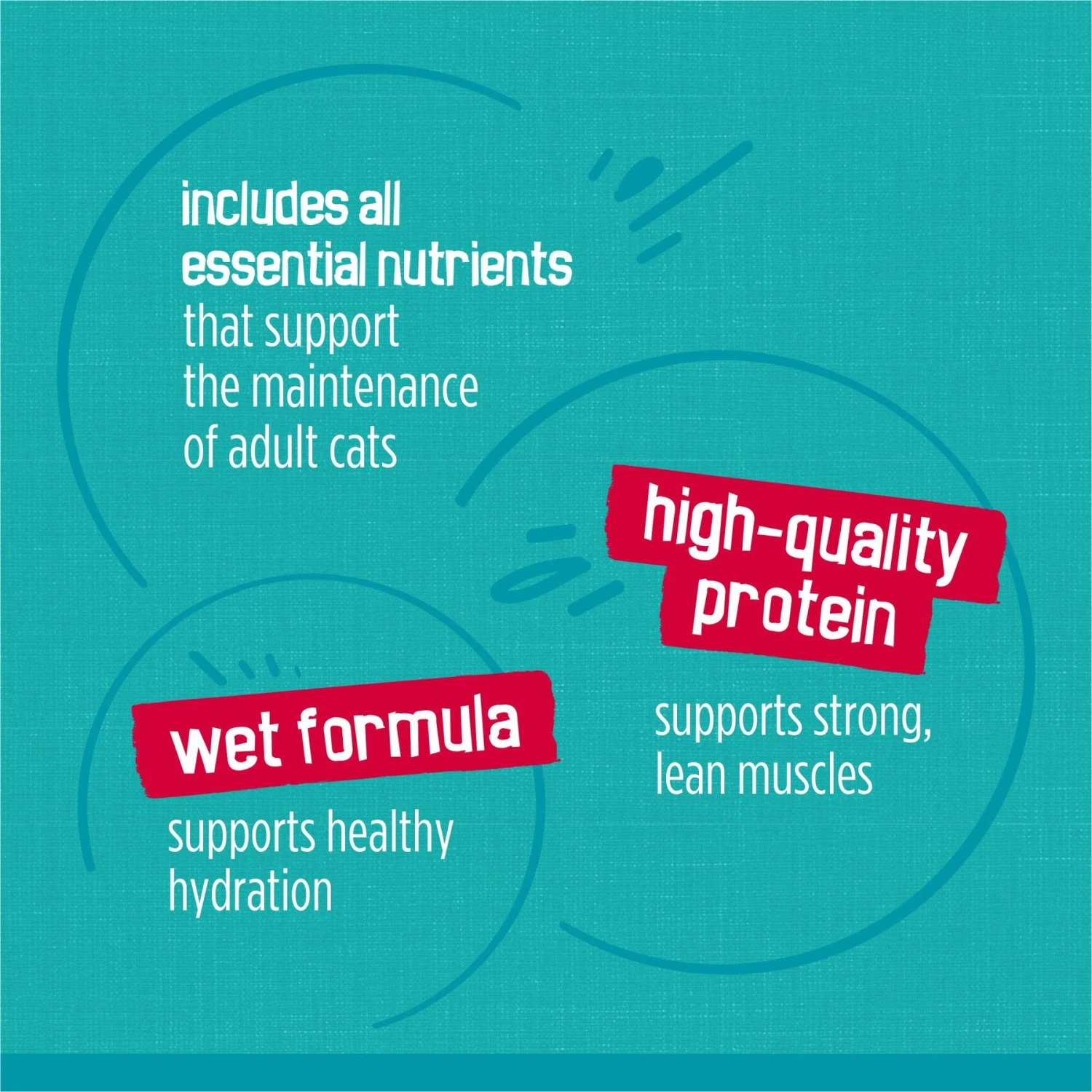 - Provides a 100% complete and balanced meal for cats, on its own or as a delicious kibble topper.
