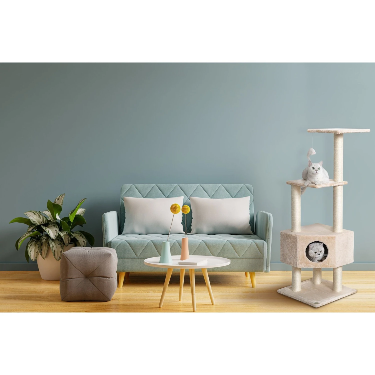 - Posts are covered in natural sisal rope which your cat will love to claw and should keep your kitty from clawing your furniture