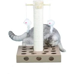 Go Pet Club 20-in IQ Busy Box Cat Scratching Post & Toys, Beige