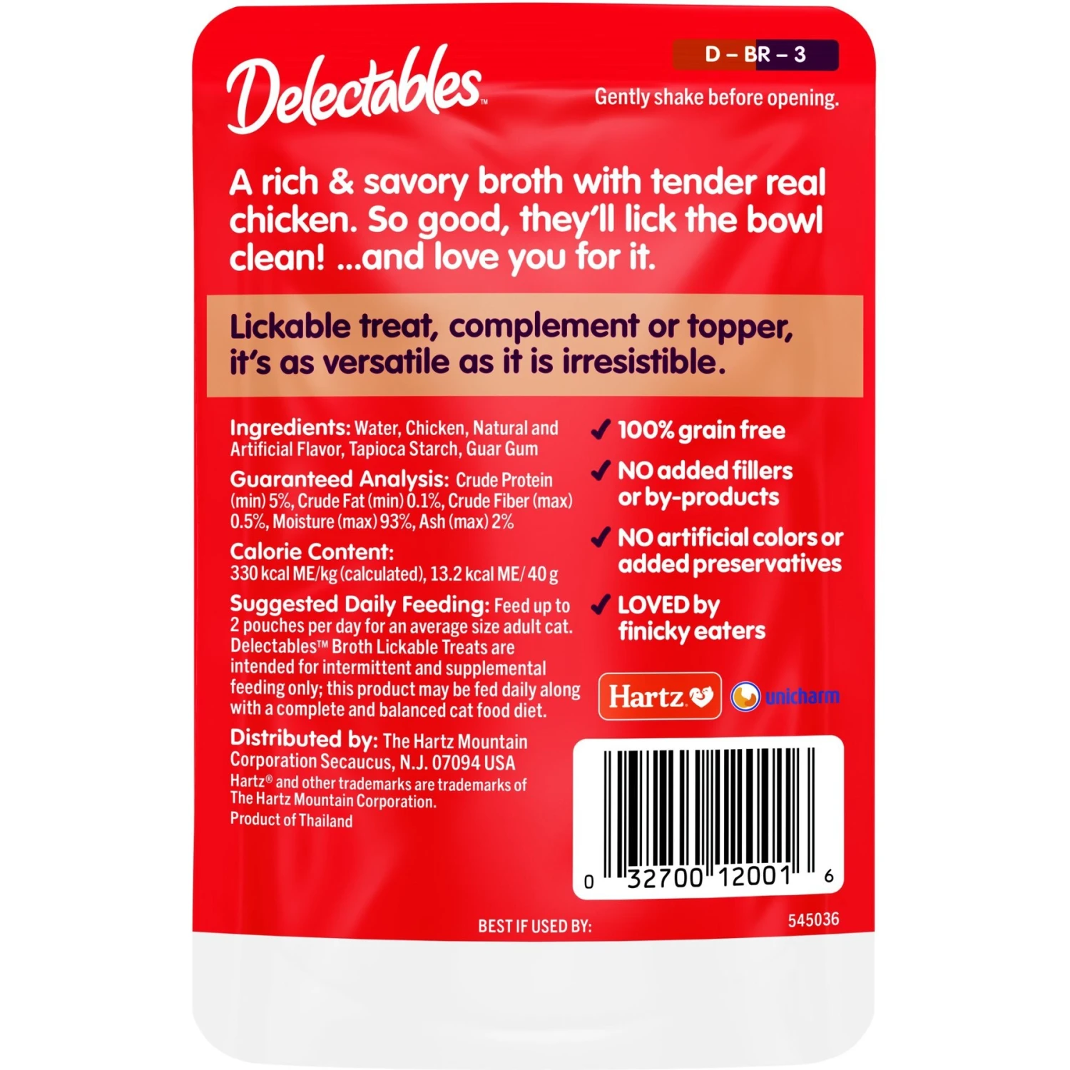 Hartz Delectables Savory Broths Non-Seafood Recipe & Chicken Grain-Free Lickable Cat Treats, 1.4-oz Pouch, Pack Of 12