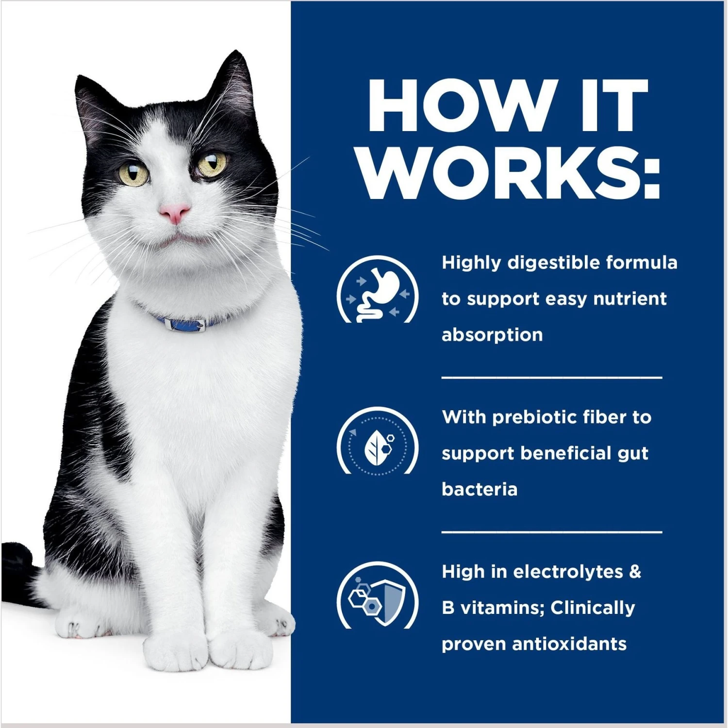 - Clinical nutrition developed by nutritionists and veterinarians especially formulated to help manage cats with digestive health problems