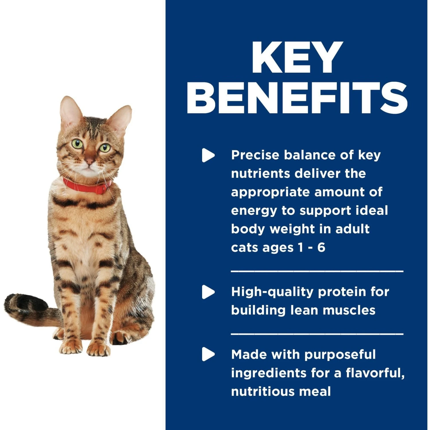 - A complete and balanced diet recommended for adult cats 1-6 years of age.