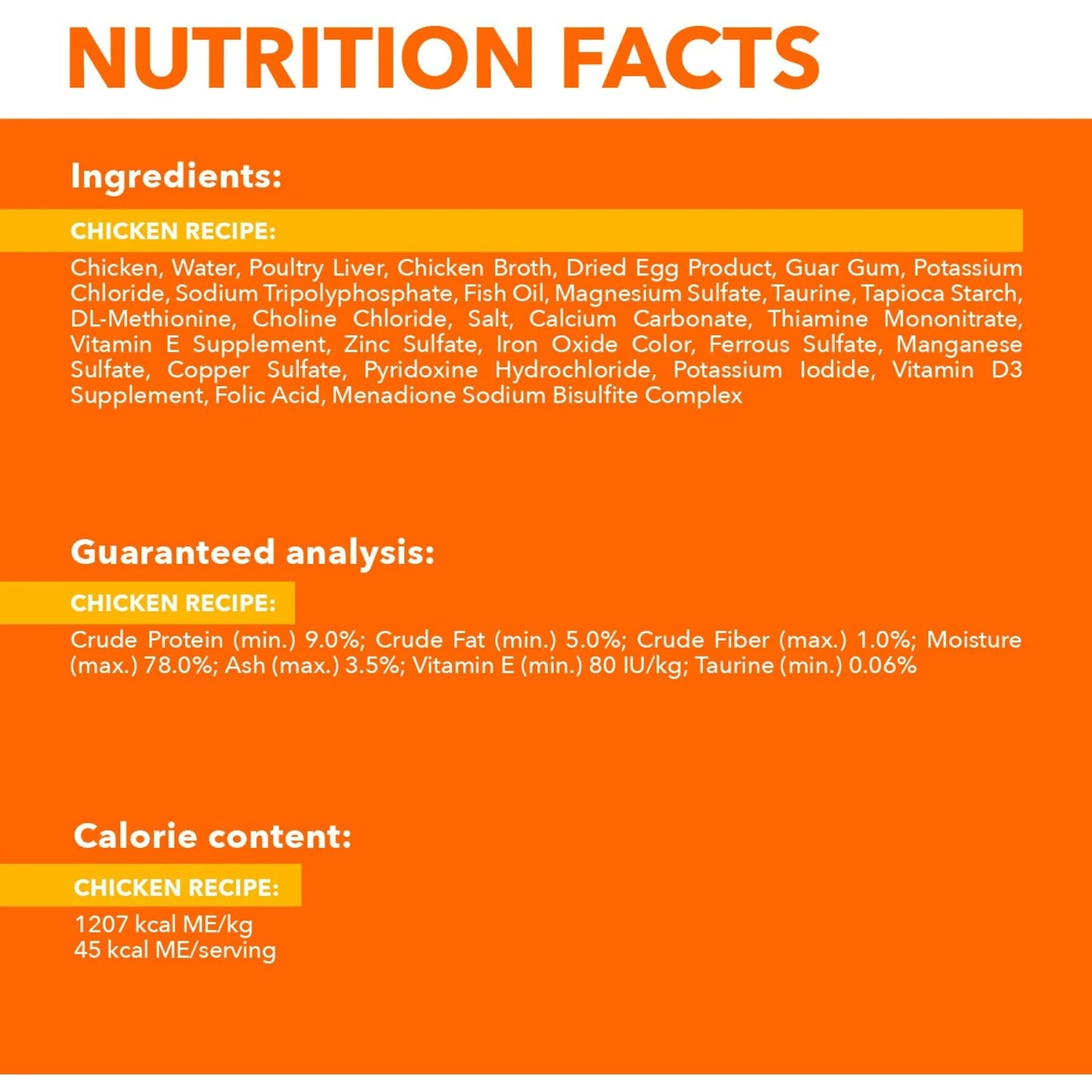 Feed your adult feline friend a meal that’s going to support her health and well-being with IAMS Perfect Portions Healthy Adult Chicken Recipe Pate Grain-Free Cat Food Trays (trace amounts of grain may be present due to cross contact during manufacturing). Unliked canned cat food, these convenient trays won’t produce messy leftovers for an easy cleanup every time! Each easy-peel tray features two individual meals that are made in the USA with some of the world’s finest ingredients, including real chicken. And to give you peace of mind, this recipe is crafted with 0% fillers and no artificial preservatives whatsoever. This soft cat food pate offers complete and balanced nutrition for your adult cat and contains antioxidant, vitamin E, to support her immune system. With veterinarian-recommended IAMS, you can feel confident knowing that your furry friend is getting the nutrition she needs and deserves.