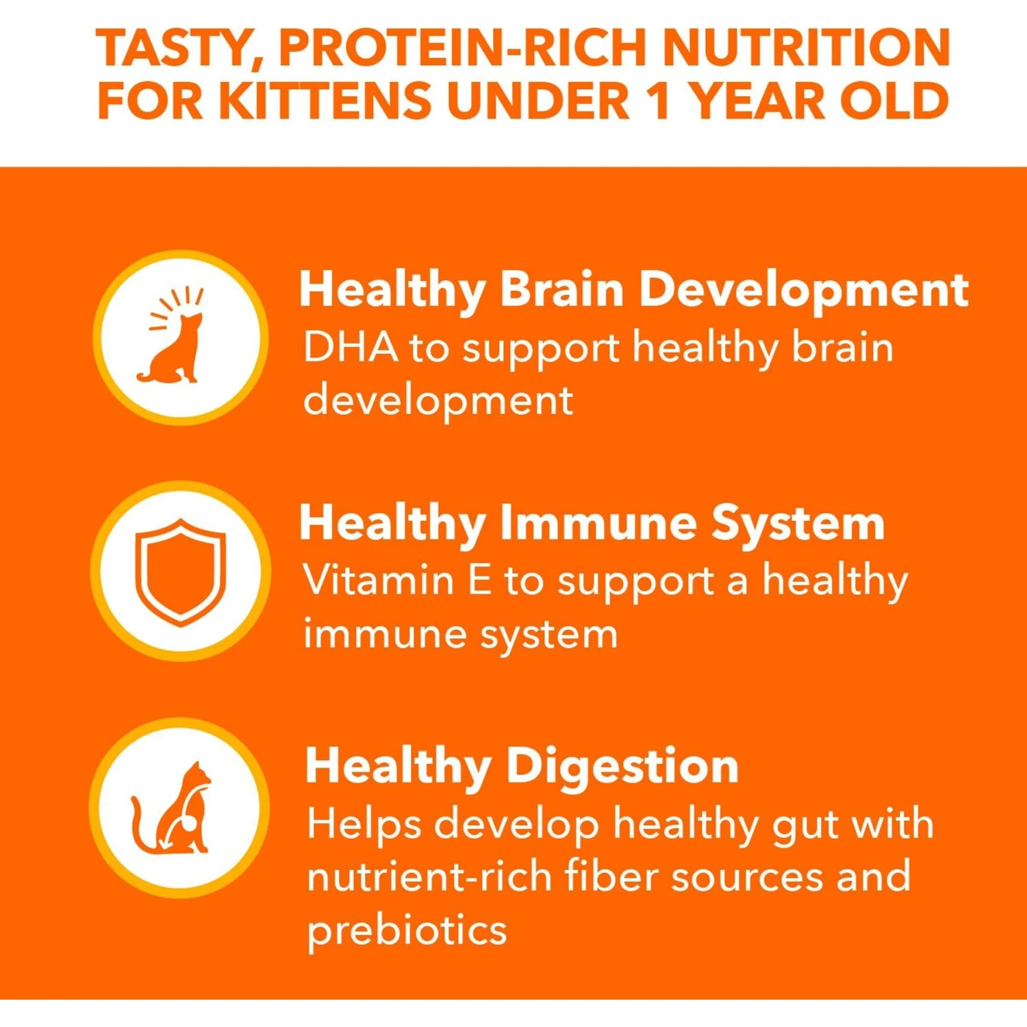 Feed your kitten a meal that’s going to support her health and well-being with IAMS Perfect Portions Healthy Kitten Chicken Recipe Pate Grain-Free Cat Food Trays (trace amounts of grain may be present due to cross contact during manufacturing). Unliked canned cat food, these convenient trays won’t produce messy leftovers for an easy cleanup every time! Each easy-peel tray features two individual meals that are made in the USA with some of the world’s finest ingredients, including real chicken. And to give you peace of mind, this recipe is crafted with 0% fillers and no artificial preservatives whatsoever. This soft cat food offers complete and balanced nutrition for your growing kitten and contains nutrients, like DHA and those found in mother’s milk, to promote brain development. This recipe also contains antioxidant, vitamin E, to support her immune system, too! With veterinarian-recommended IAMS, you can feel confident knowing that your furry friend is getting the nutrition she needs and deserves.
