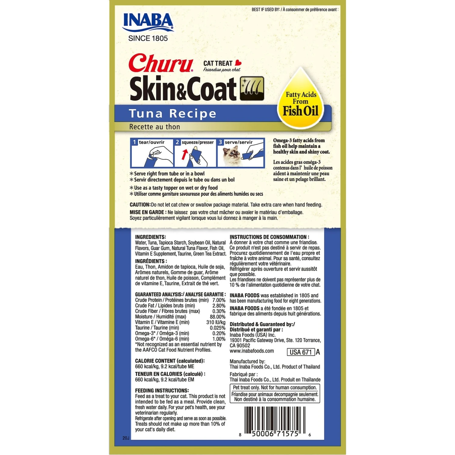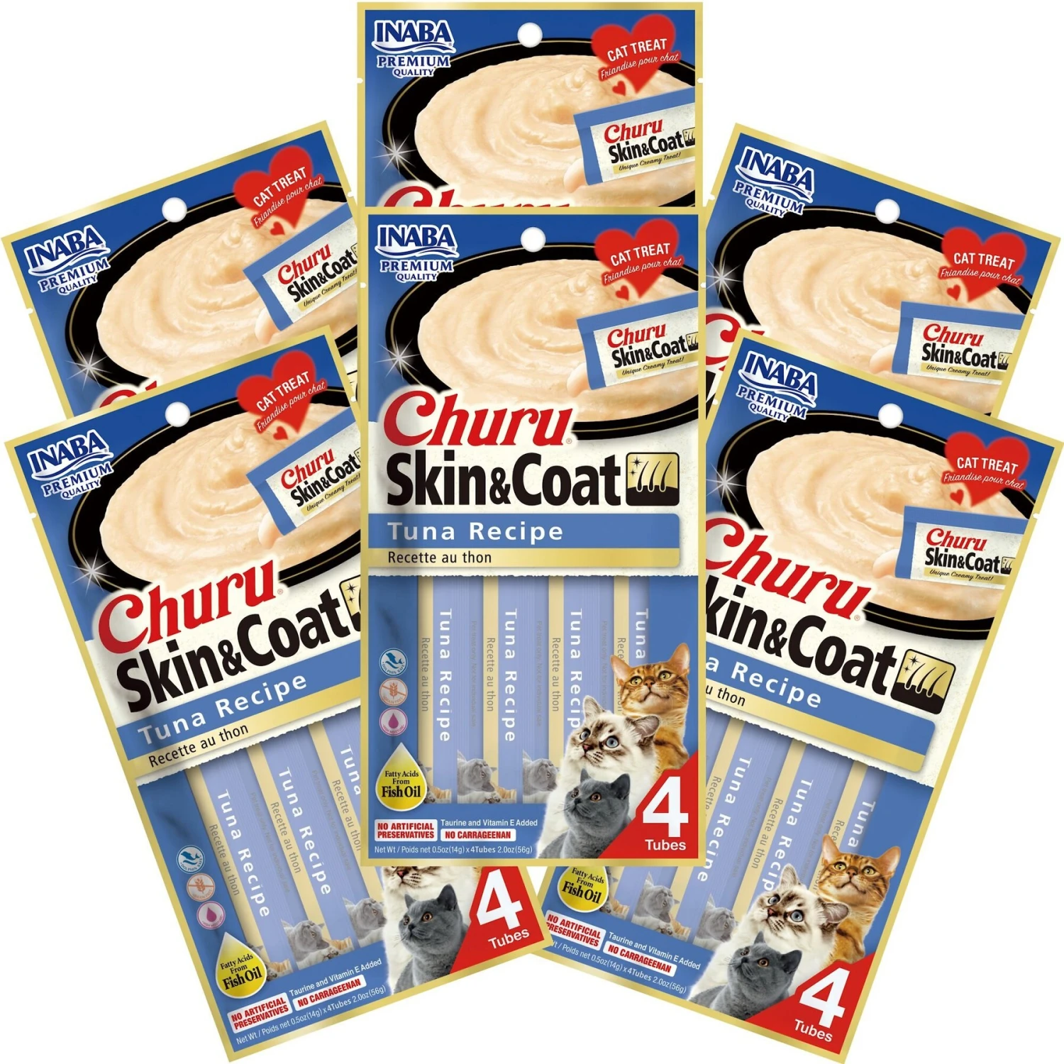 Inaba Churu Grain-Free Skin & Coat Tuna Recipe Lickable Cat Treat, 24 Count