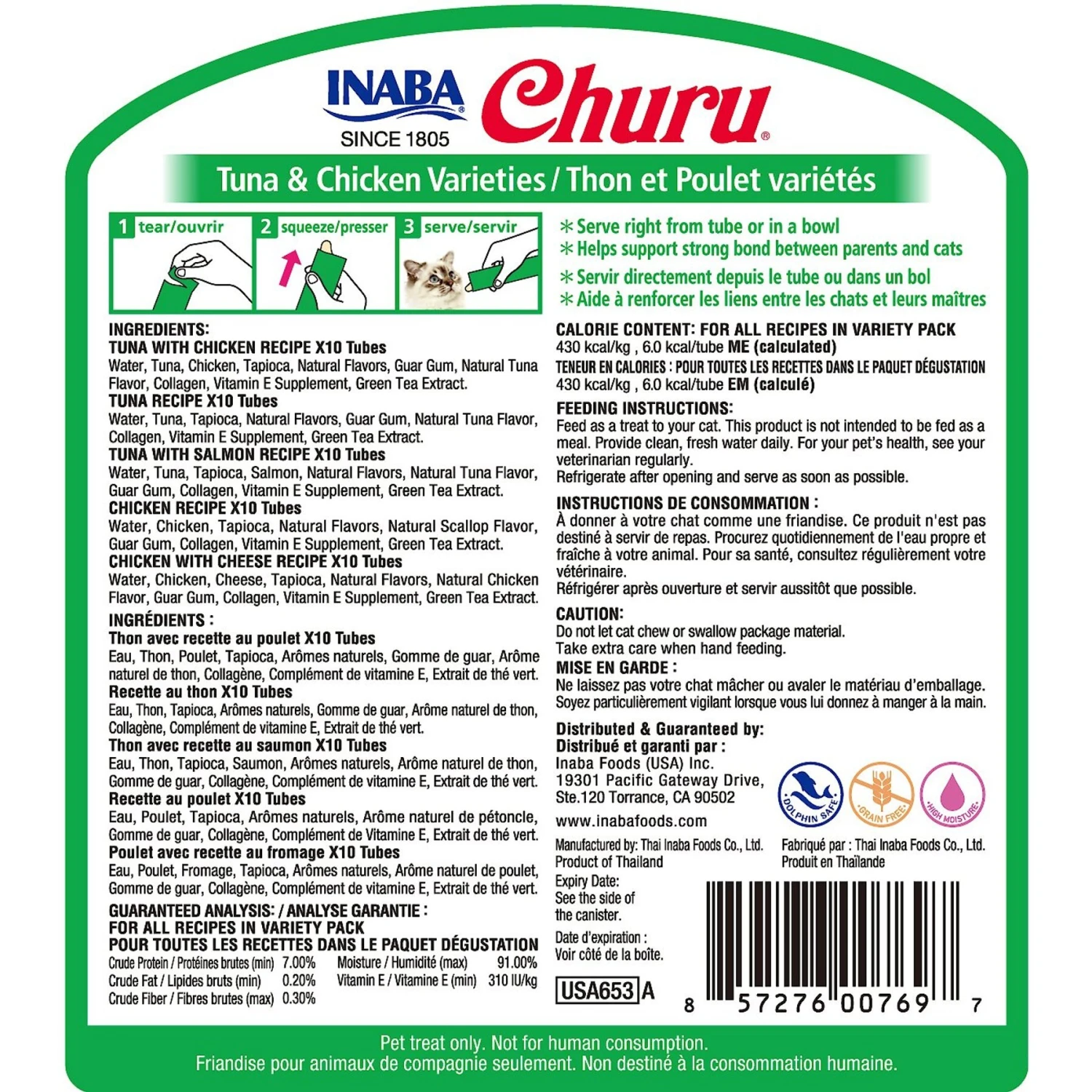 Inaba Churu Tuna & Chicken Puree Variety Pack Grain-Free Lickable Cat Treat