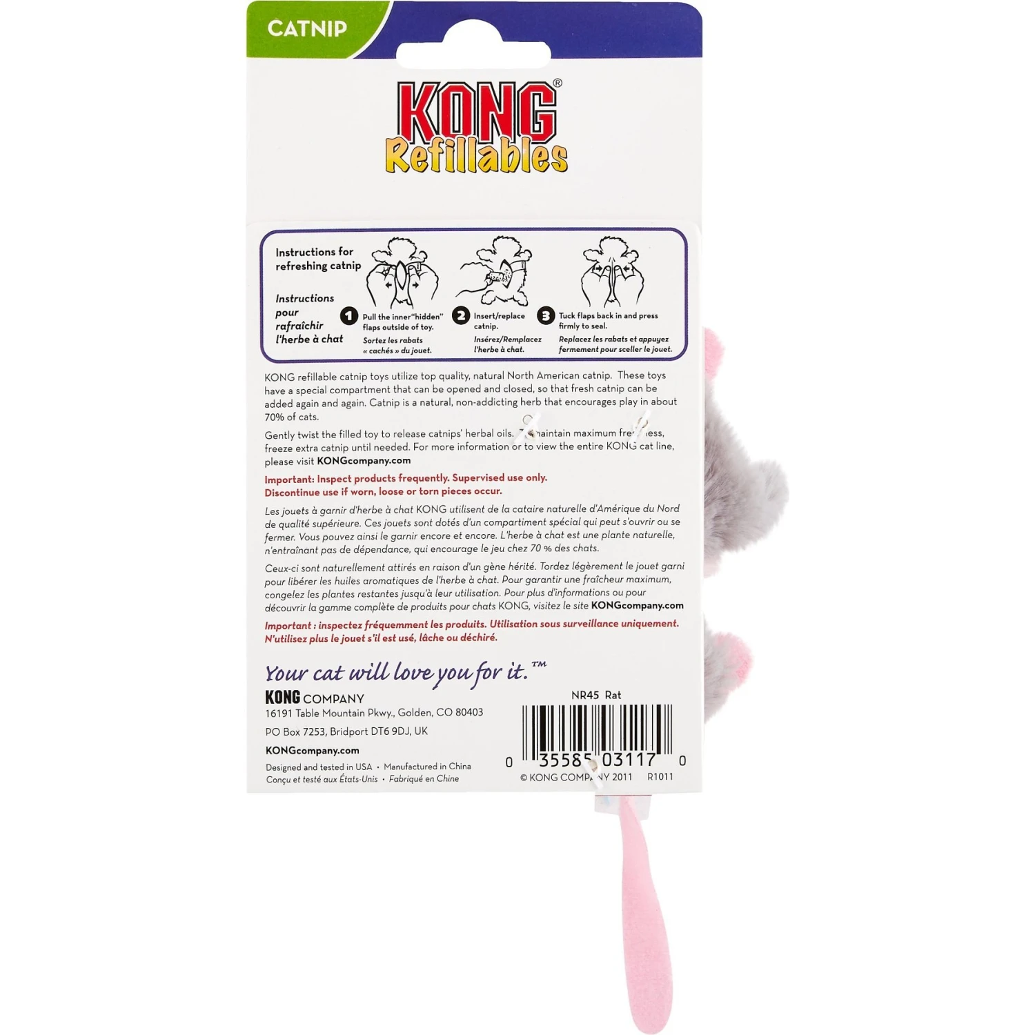 - KONG refillables have a compartment to hold fresh catnip securely in place