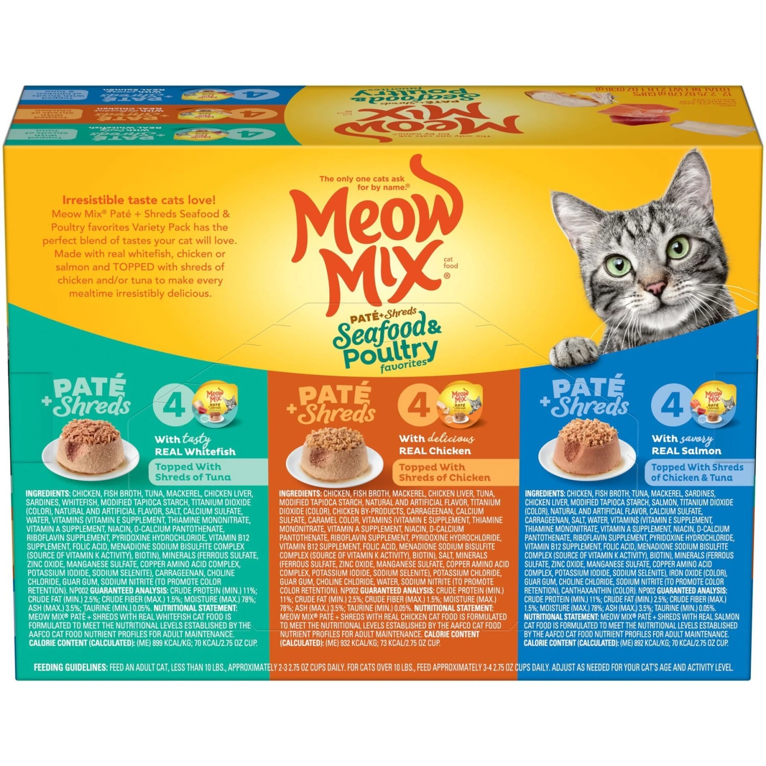 Meow Mix Pate Toppers Seafood & Poultry Variety Pack Cat Food Trays
