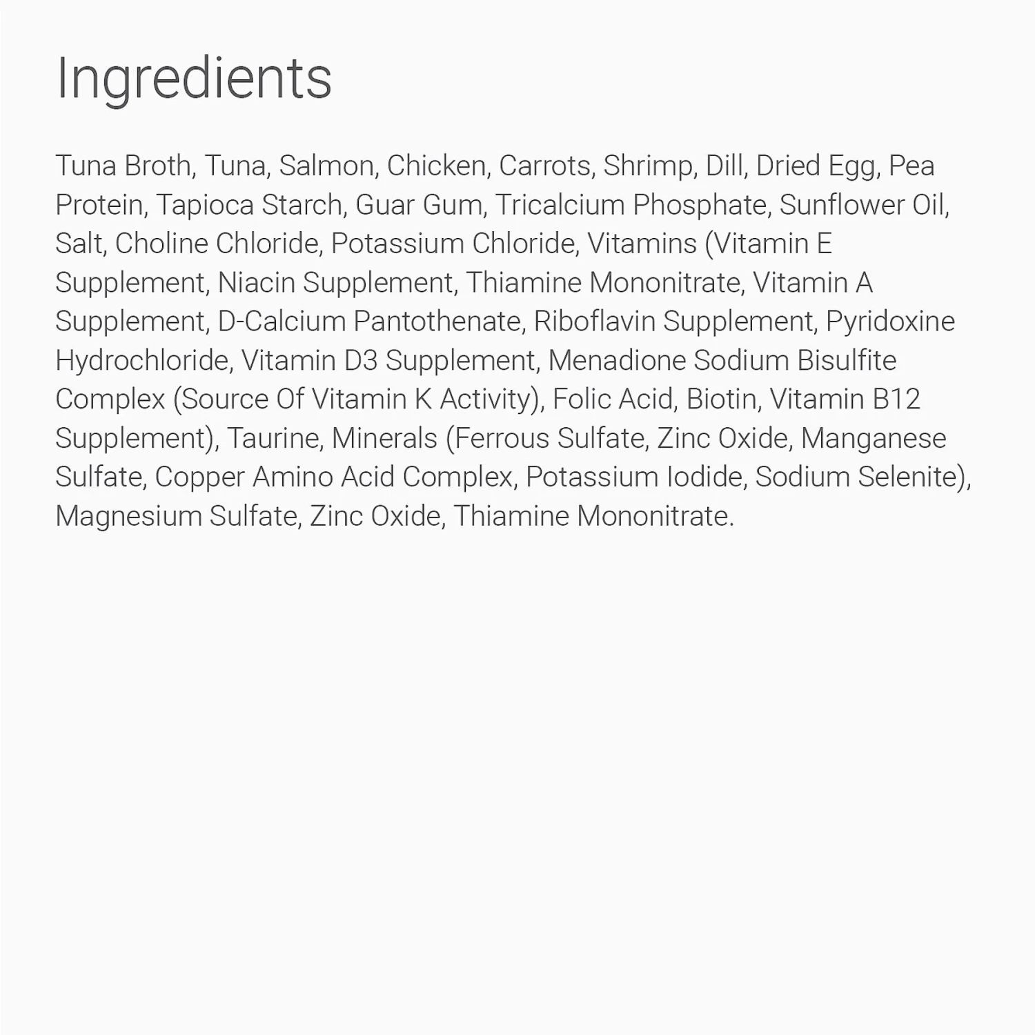 - Gourmet, grain-free stew features lean, premium-quality tuna, salmon, chicken and shrimp as the top proteins.