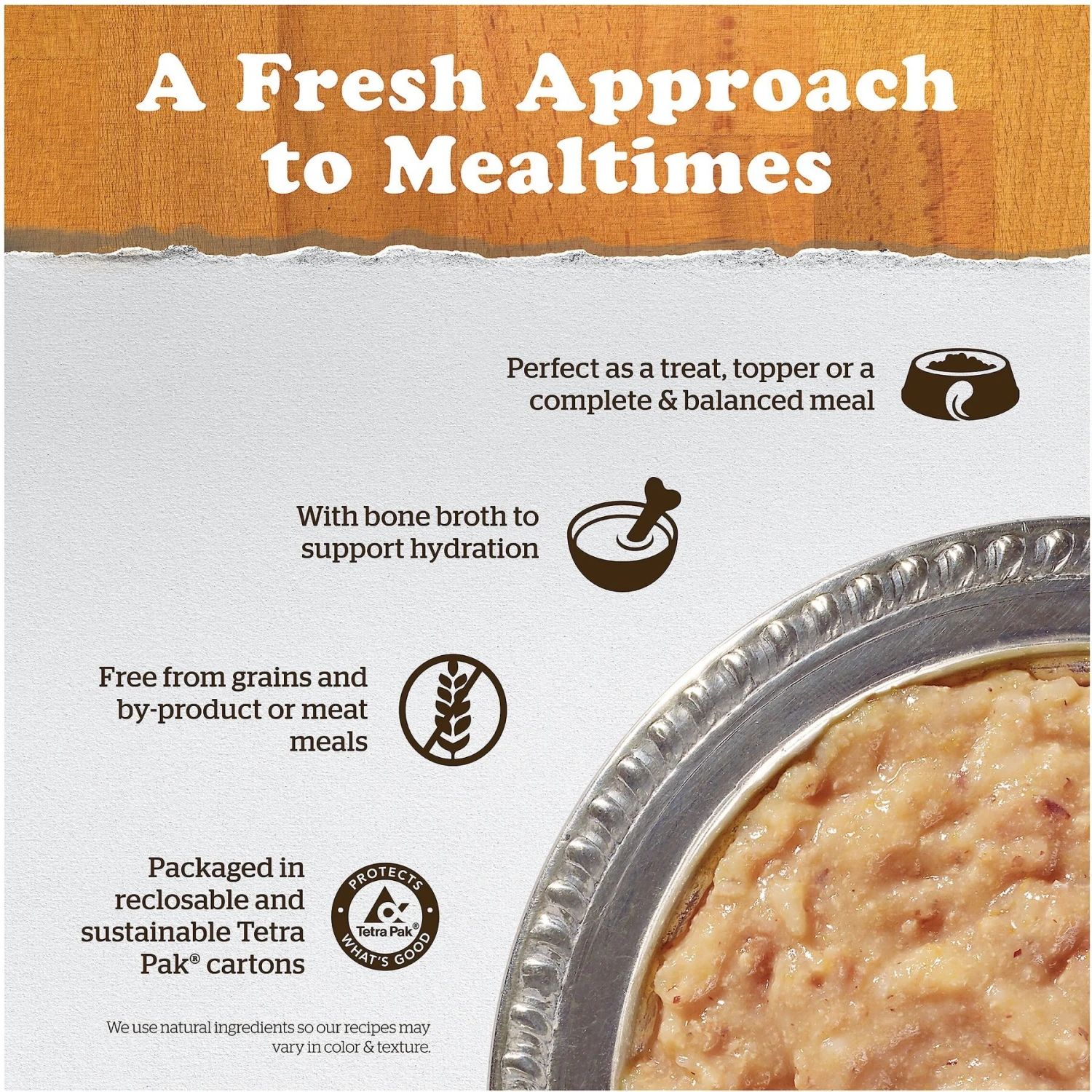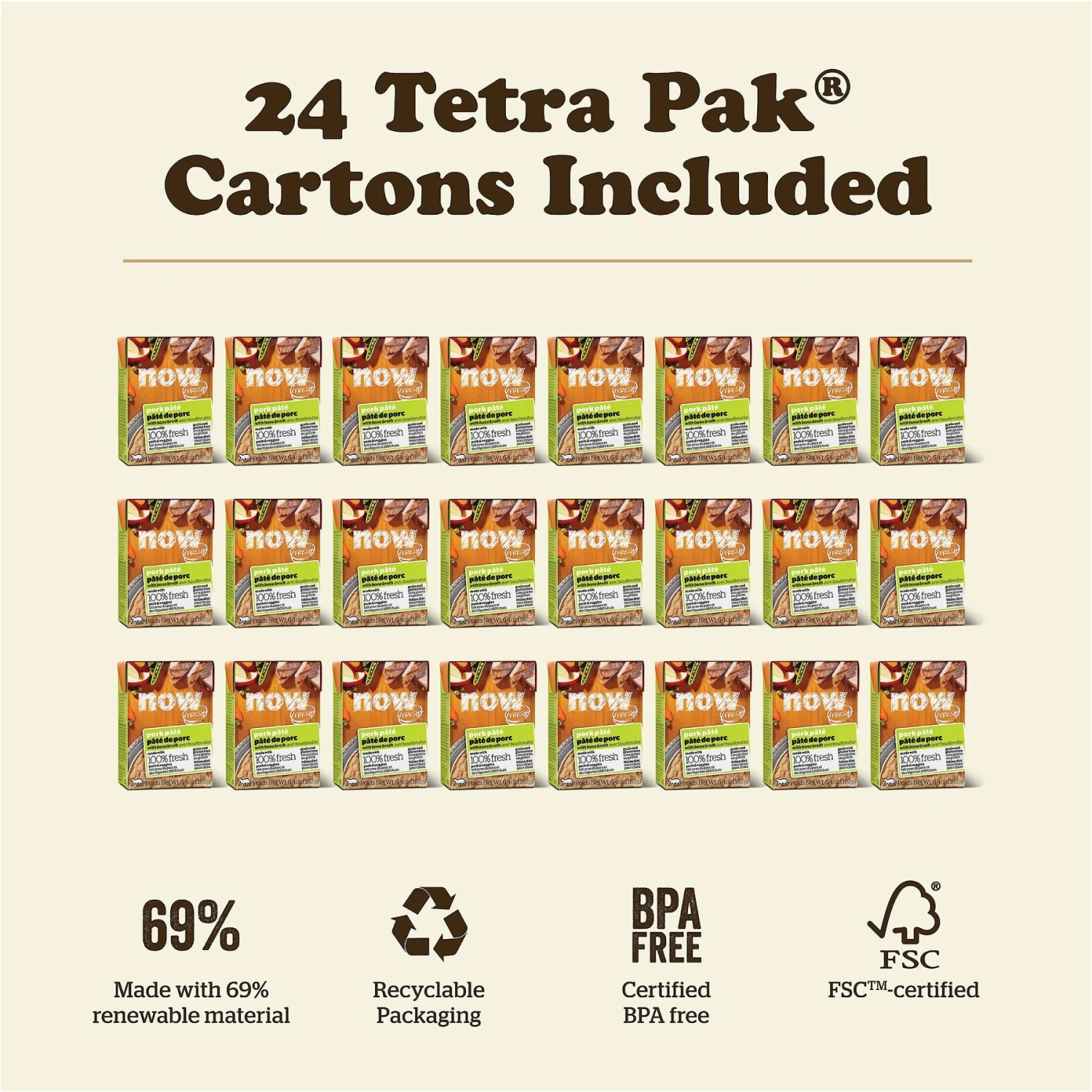 - Comes in an easy-to-store, resealable, and recyclable carton and has no rendered meats, by-products, or artificial preservatives.
