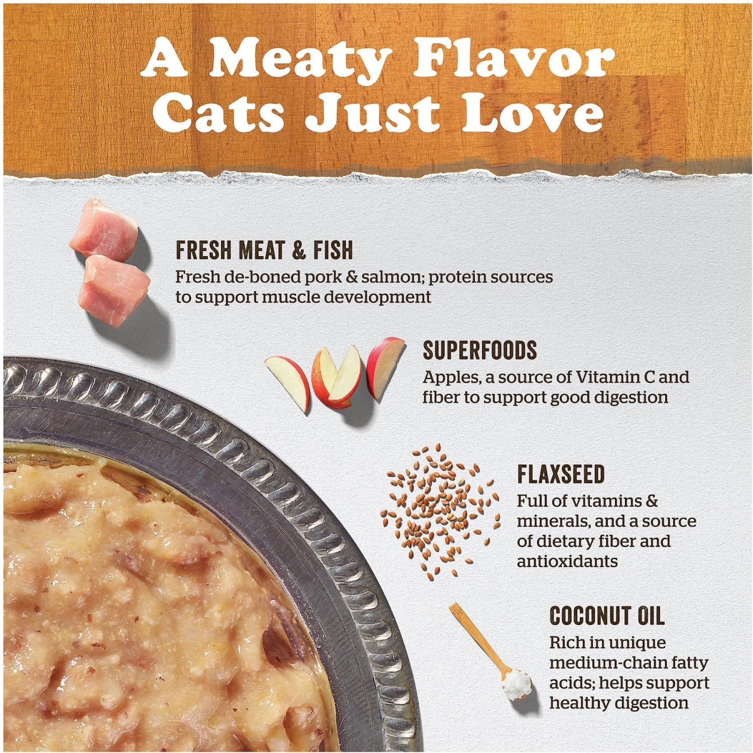 - Fresh pork and turkey bone broth are the first ingredients, plus salmon so it’s packed with lean protein, collagen and kitty-approved flavor.