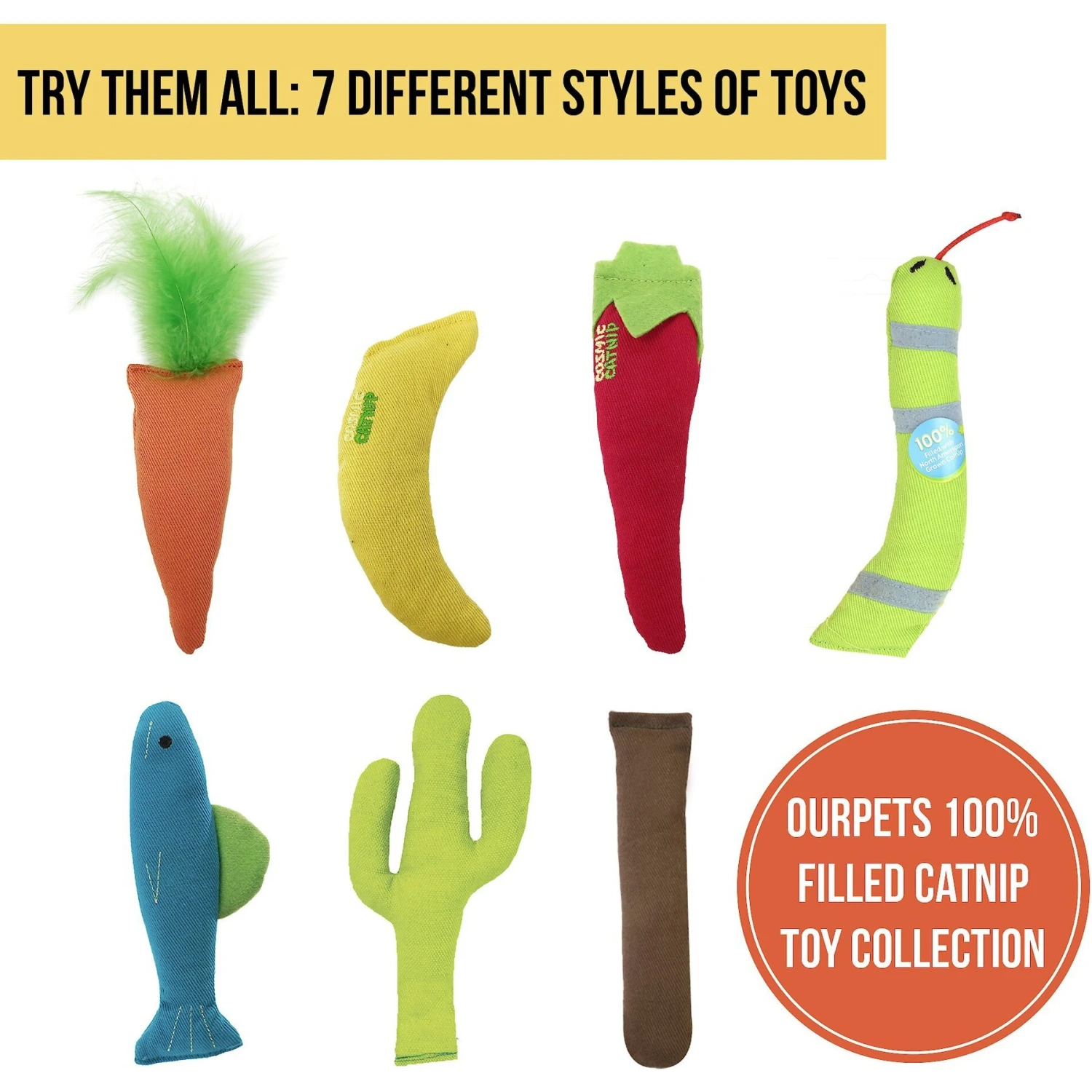 - Part of the OurPets 100% Filled Catnip Toy Collection—collect the Cactus (Prickles), Fish (Annette Fish) and Carrot (24 Karat) toys, too!