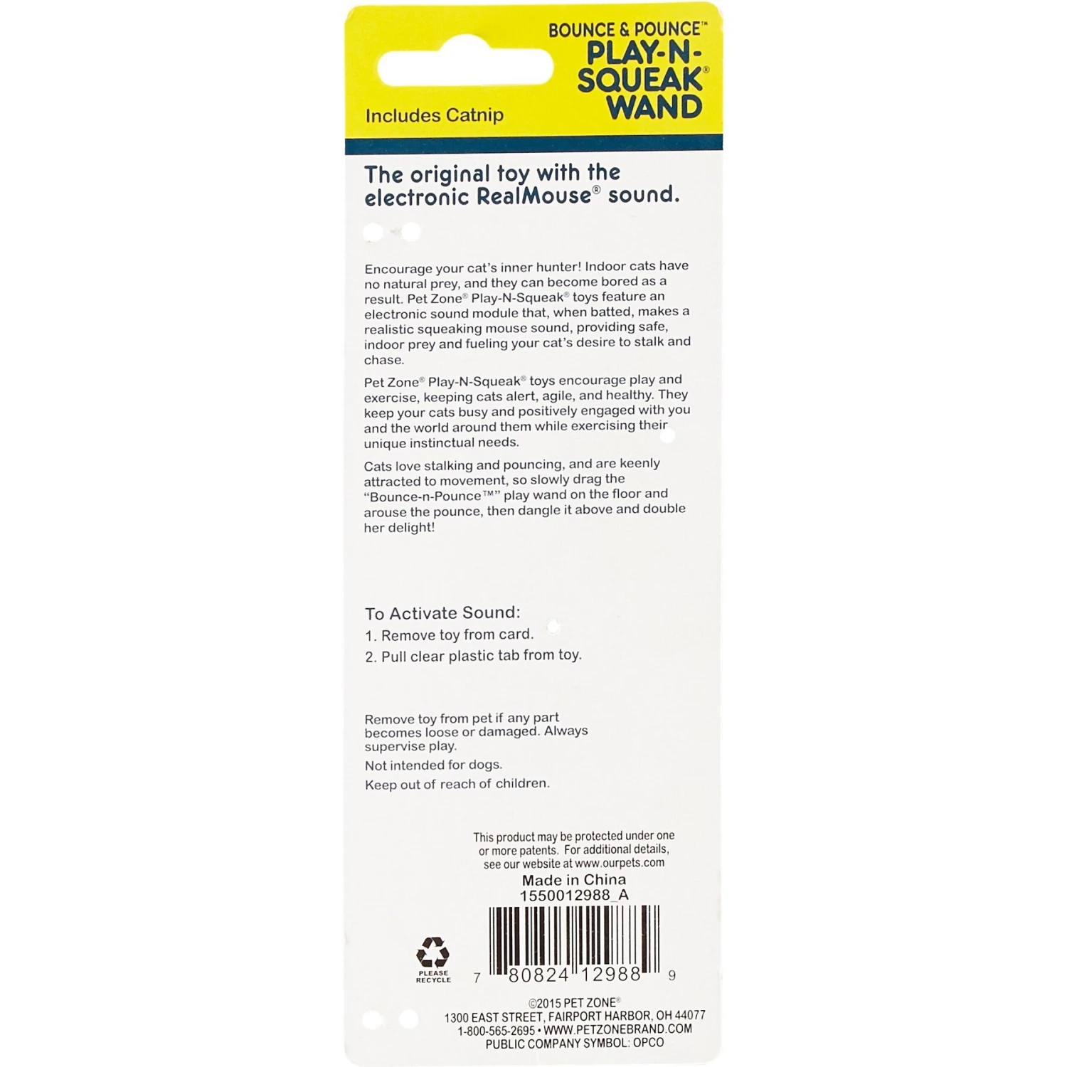Pet Zone Bounce & Pounce Wand Cat Toy With Catnip