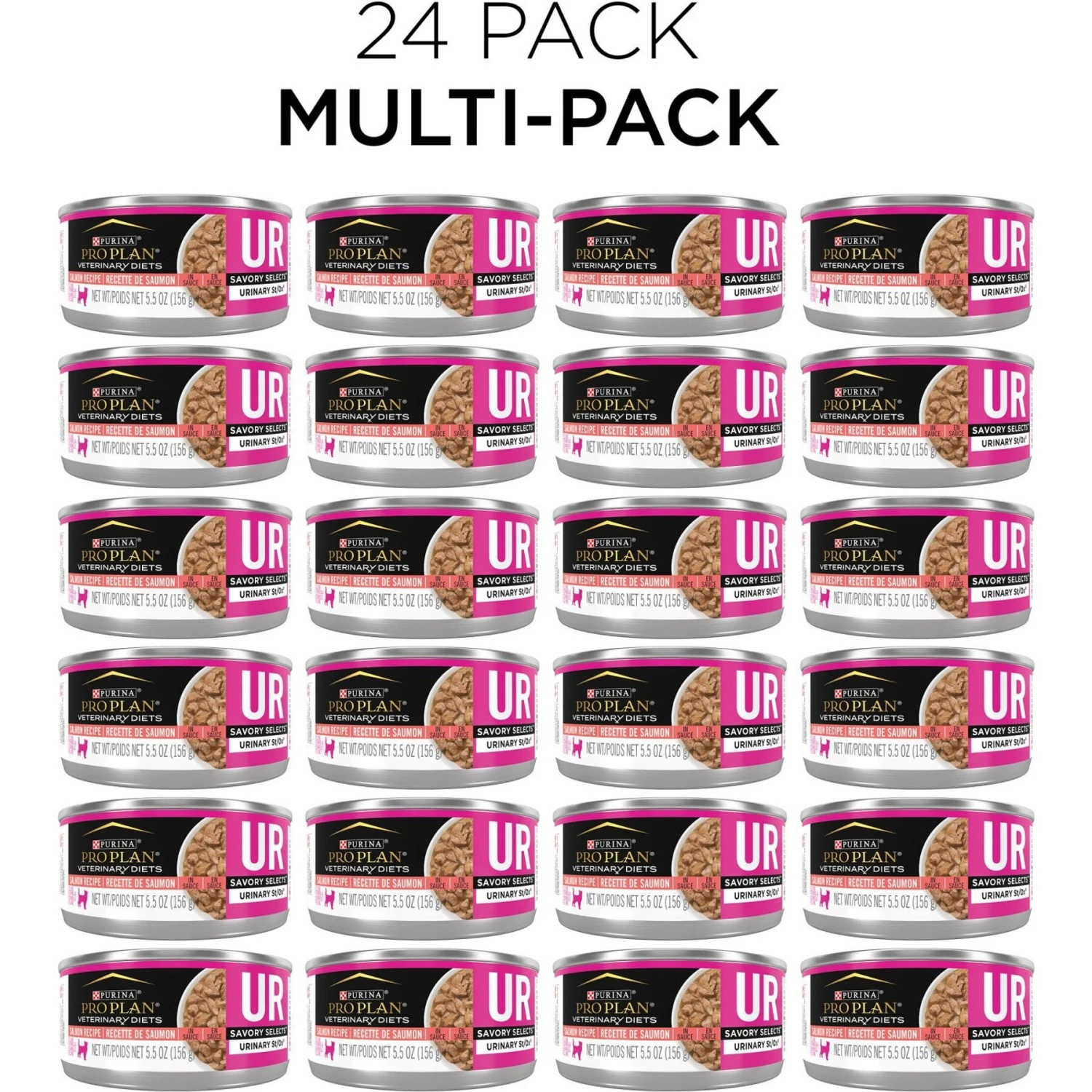 - Purina Pro Plan Veterinary Diets UR Savory Selects Urinary St/Ox has been specifically formulated to meet the dietary needs of adult cats that are predisposed to lower urinary tract conditions. This delicious salmon recipe offers chunks in gravy and has exceptional palatability.