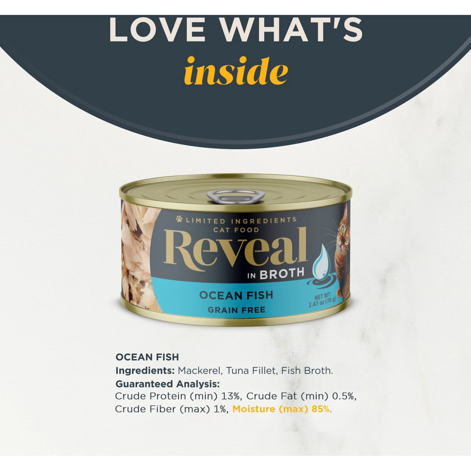 Reveal Natural Grain-Free Ocean Fish In Broth Flavored Wet Cat Food, 2.47-oz Can, Case Of 24