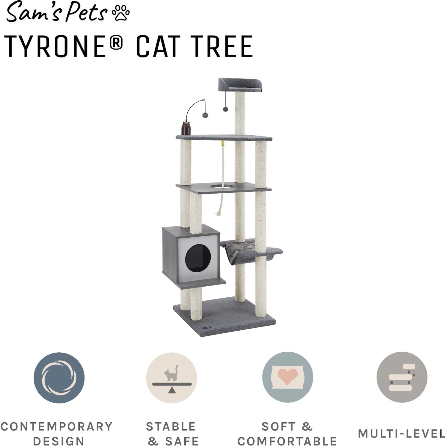 Sam’s Pets Tyrone 70.5-in Cat Tree, Gray