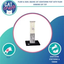 Cat Craft Plush & Sisal Square Cat Scratching Post With Plush Hanging Cat Toy, Gray/Natural, Small