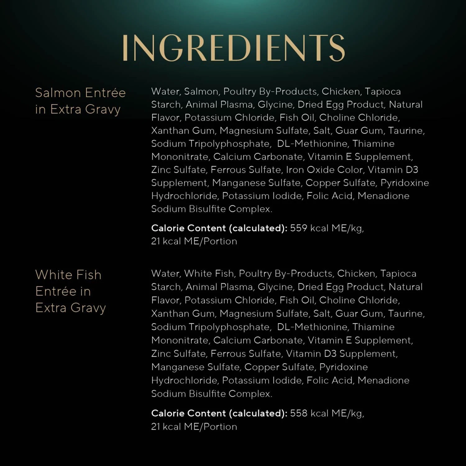 - 100% complete and balanced adult cat food variety pack includes salmon and white fish meal options.