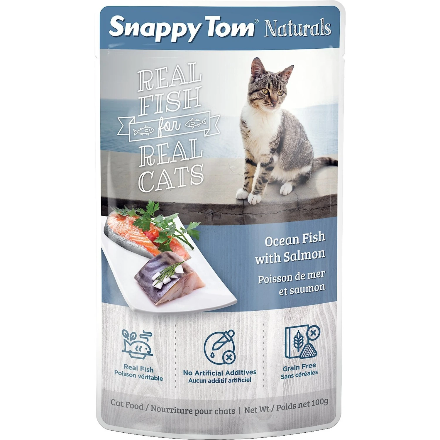 Snappy Tom Naturals Ocean Fish With Salmon Cat Food Pouches, 3.5-oz, Case Of 12