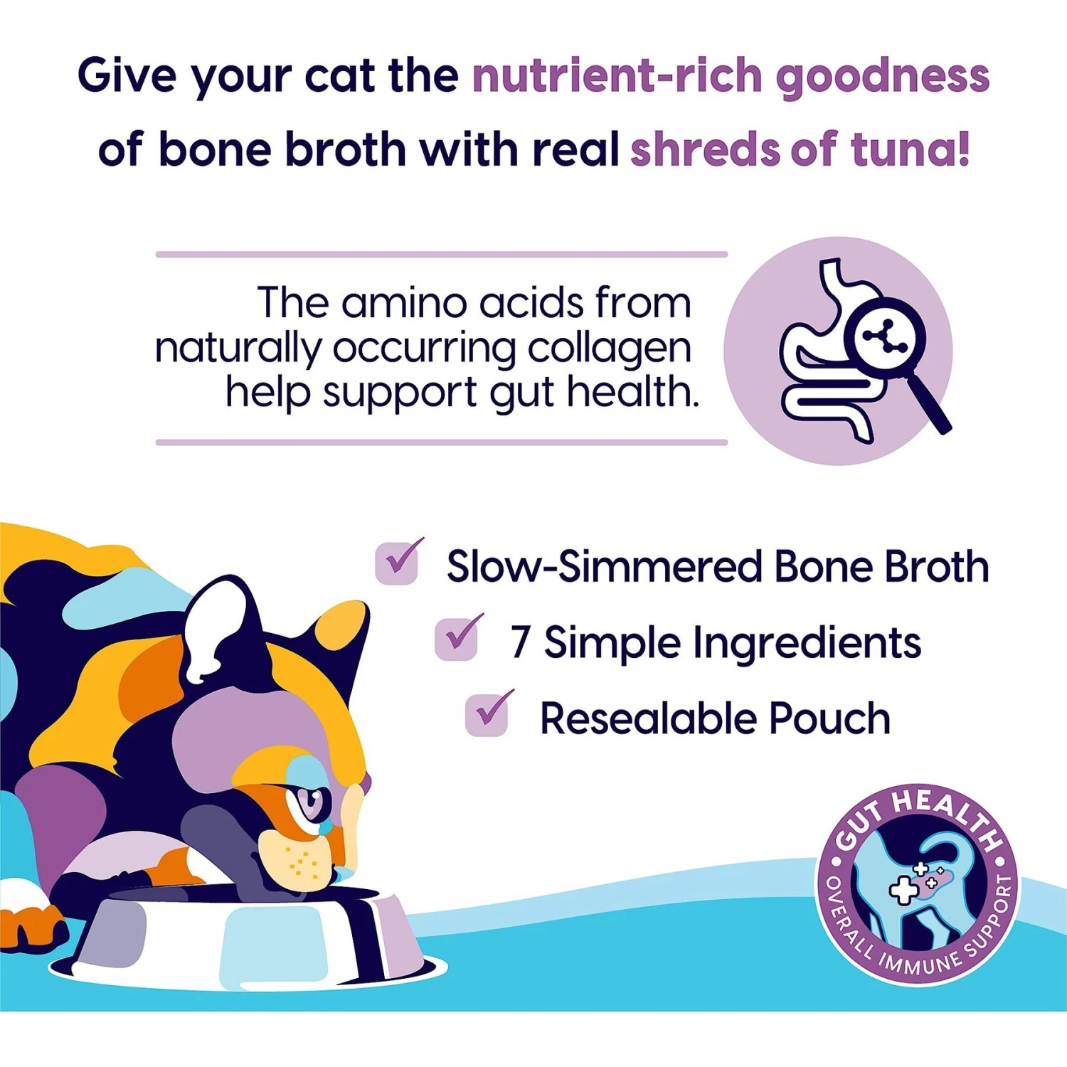 Solid Gold Bone Broth Tuna Shreds Grain-Free Wet Cat Food Topper, 3-oz Pouch, Case Of 12