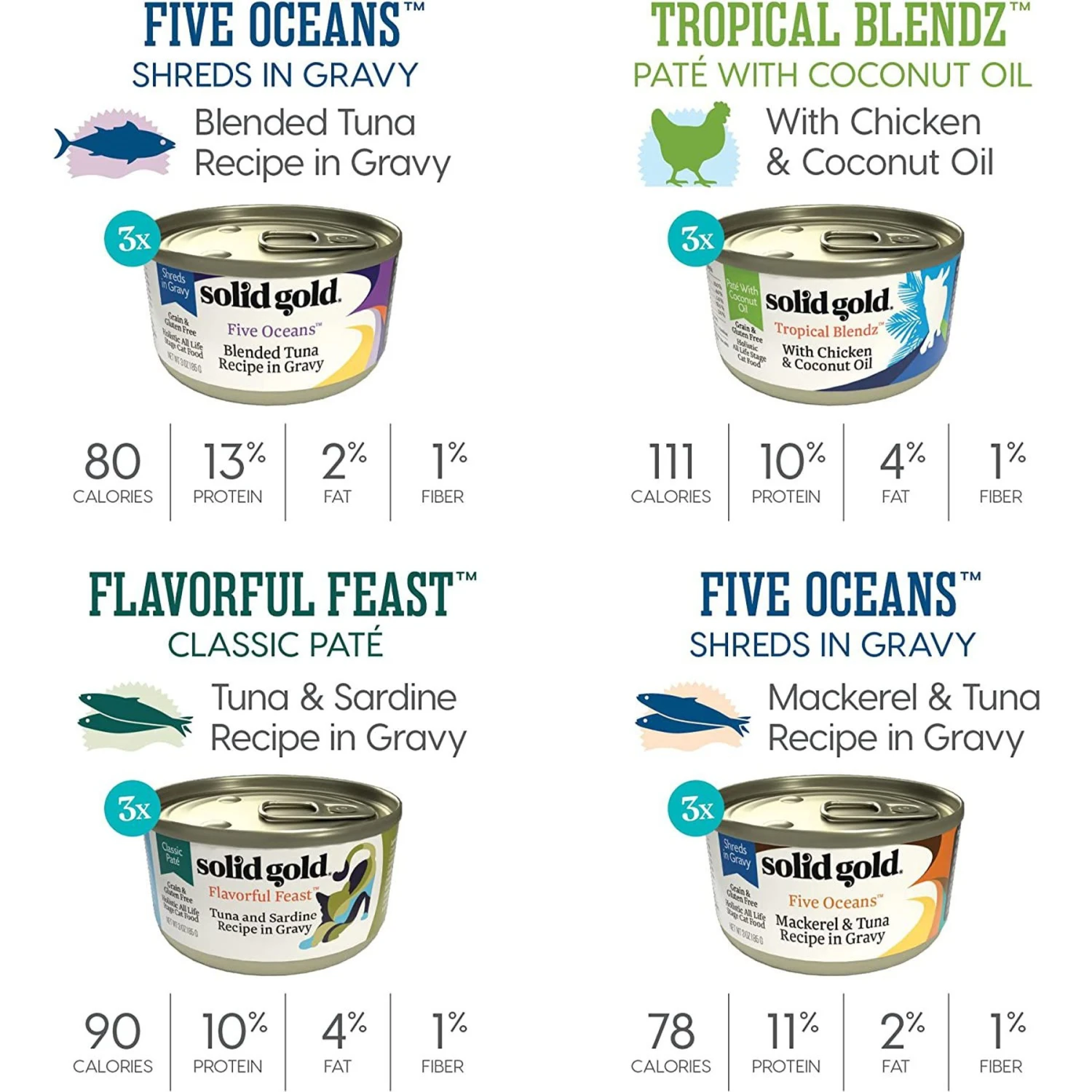 Solid Gold Feline Favorites Variety Pack Grain-Free Wet Cat Food, 3-oz Can, Case Of 12