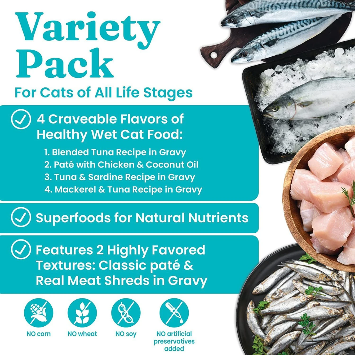- Created with sardine and tuna pate to help your kitty with sensitive stomach support.