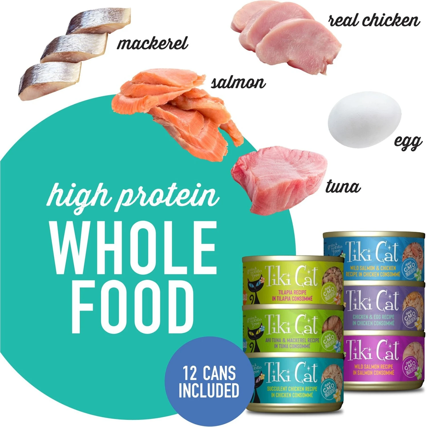 Tiki Cat Luau Variety Pack Grain-Free Canned Cat Food & Tiki Cat After Dark Variety Pack Canned Cat Food