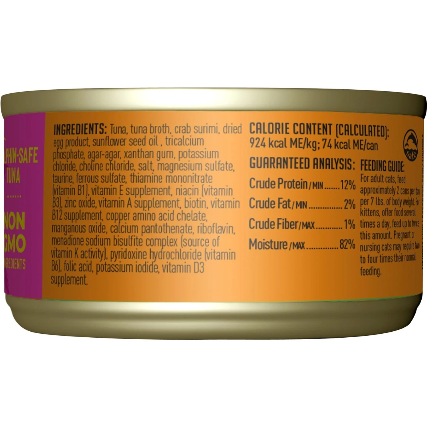- Features real, dolphin-safe tuna and crab surimi in a tasty broth.