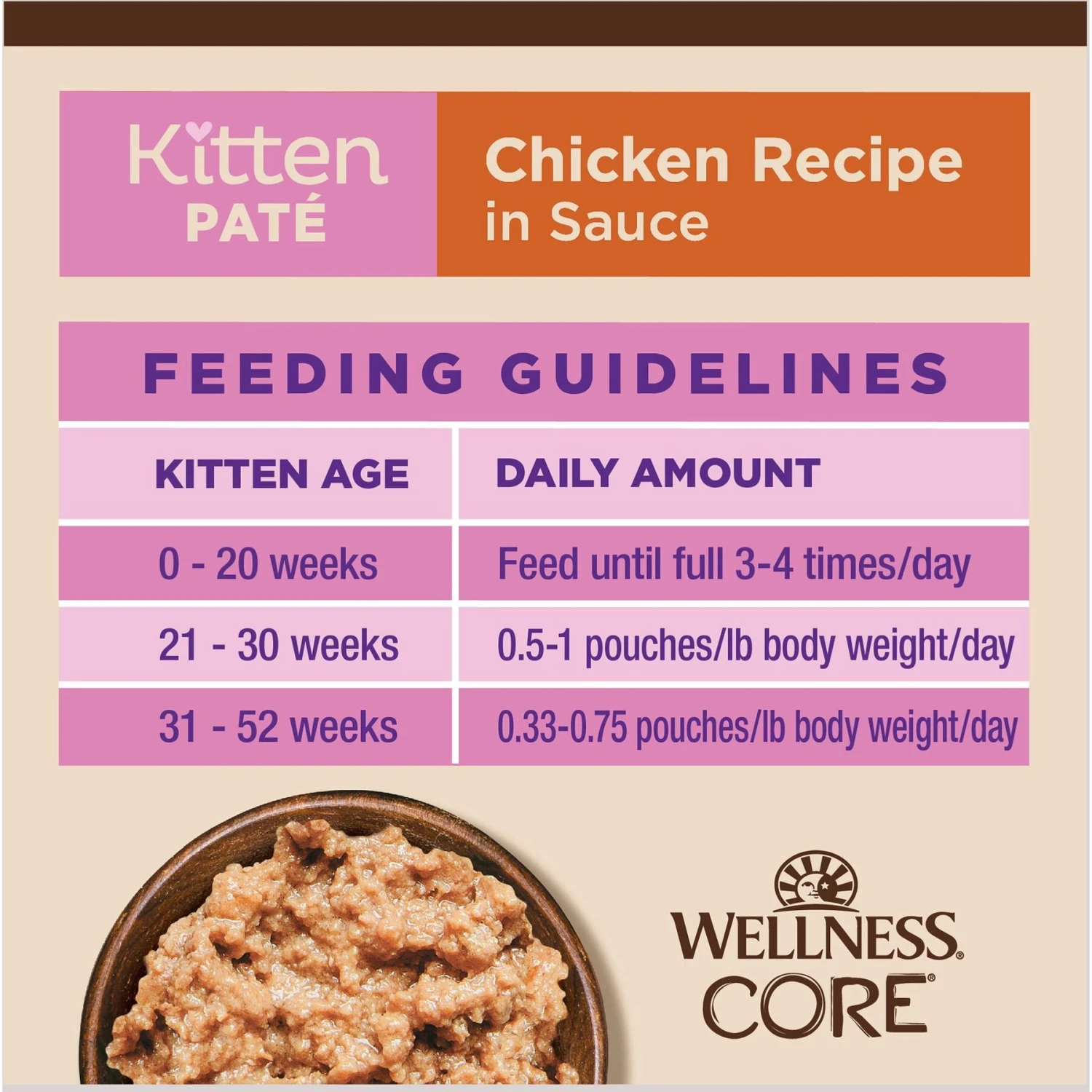 Wellness CORE Tiny Tasters Kitten Chicken Grain-Free Pate Wet Cat Food, 1.75-oz Pouch, Case Of 12