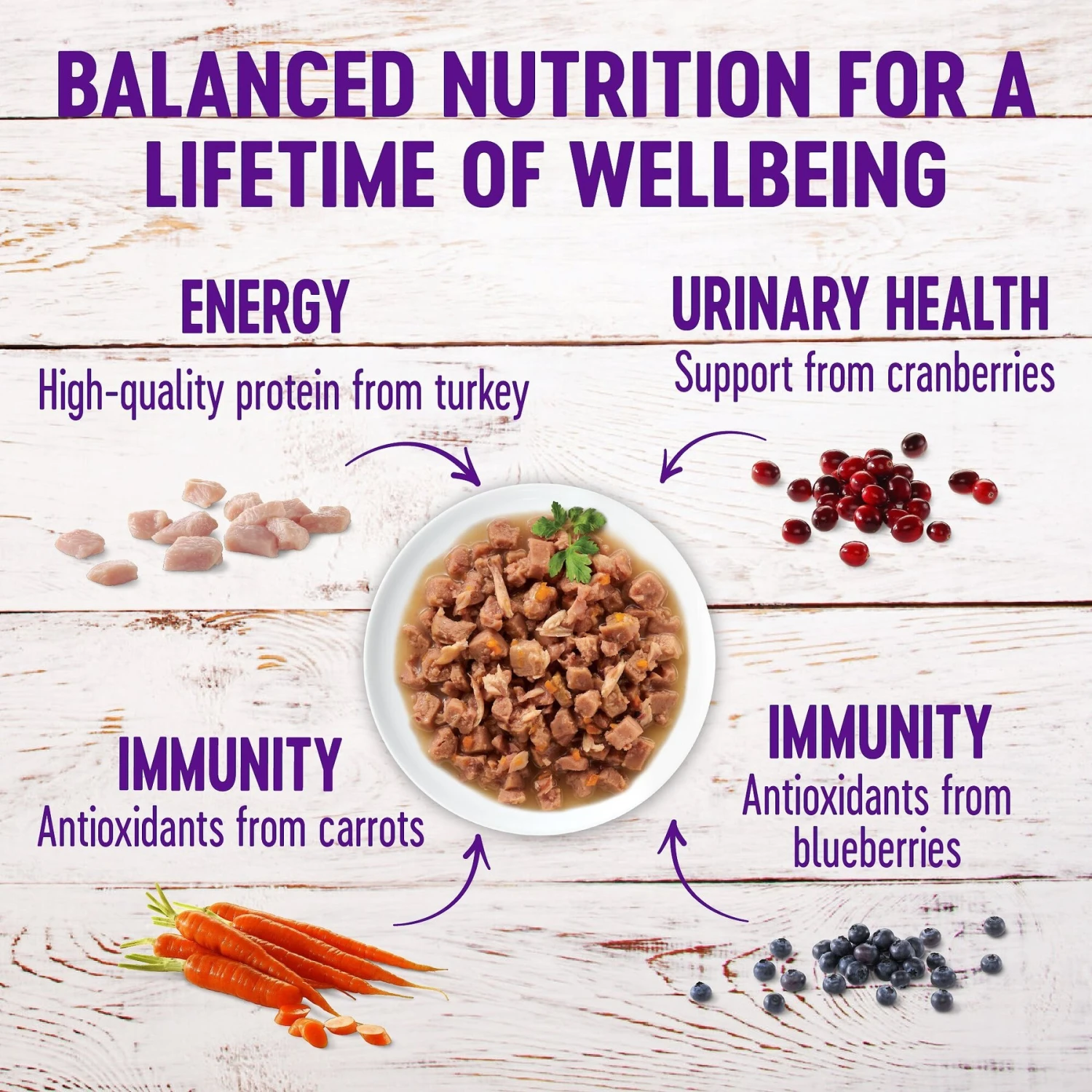 - Helps promote urinary health with essential moisture from broth to keep your kitty hydrated and antioxidant-rich cranberries.