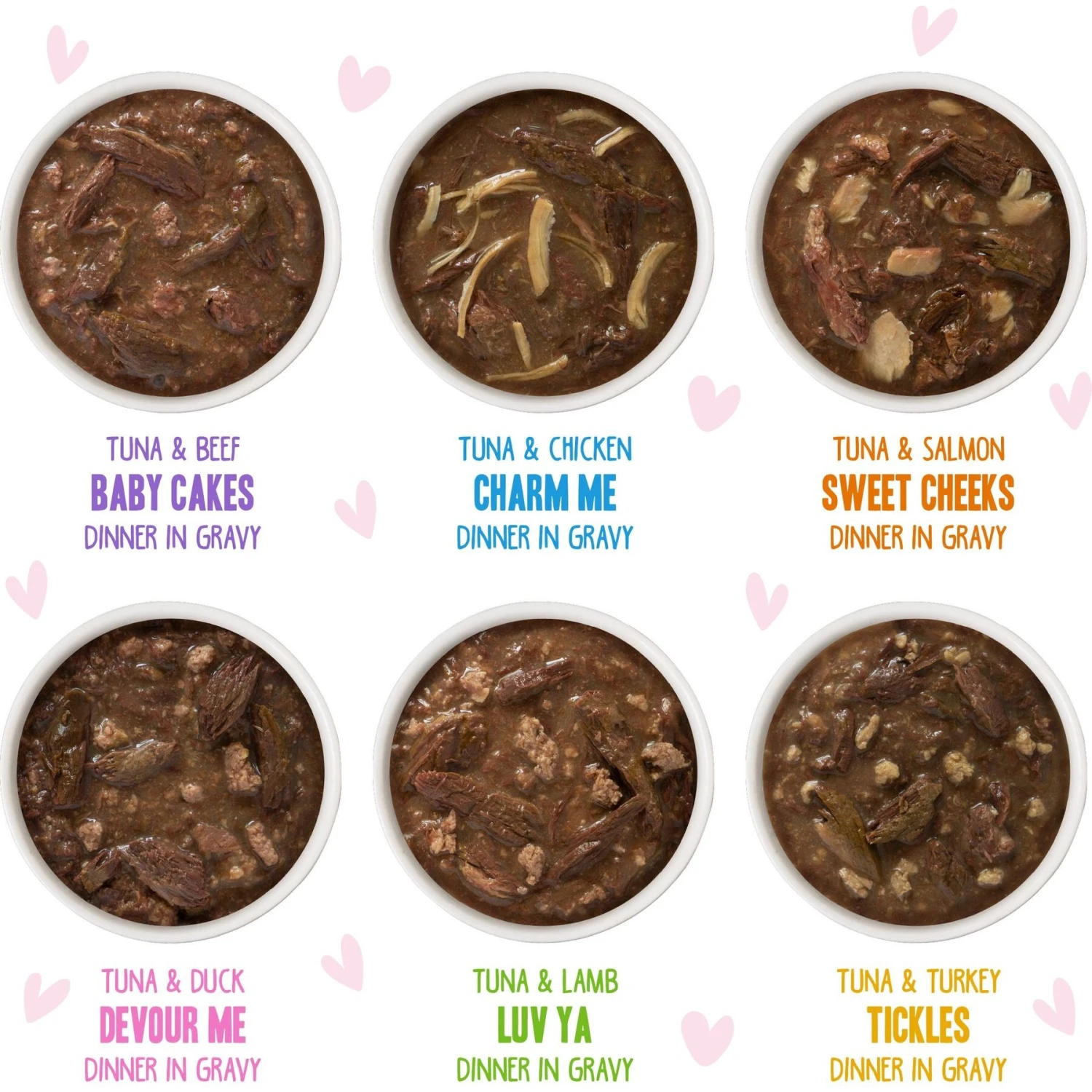 Weruva Cats In The Kitchen Cuties Variety Pack Grain-Free Canned Cat Food & BFF Rainbow A Gogo Variety Pack Wet Cat Food Pouches, 3-oz, Case Of 12