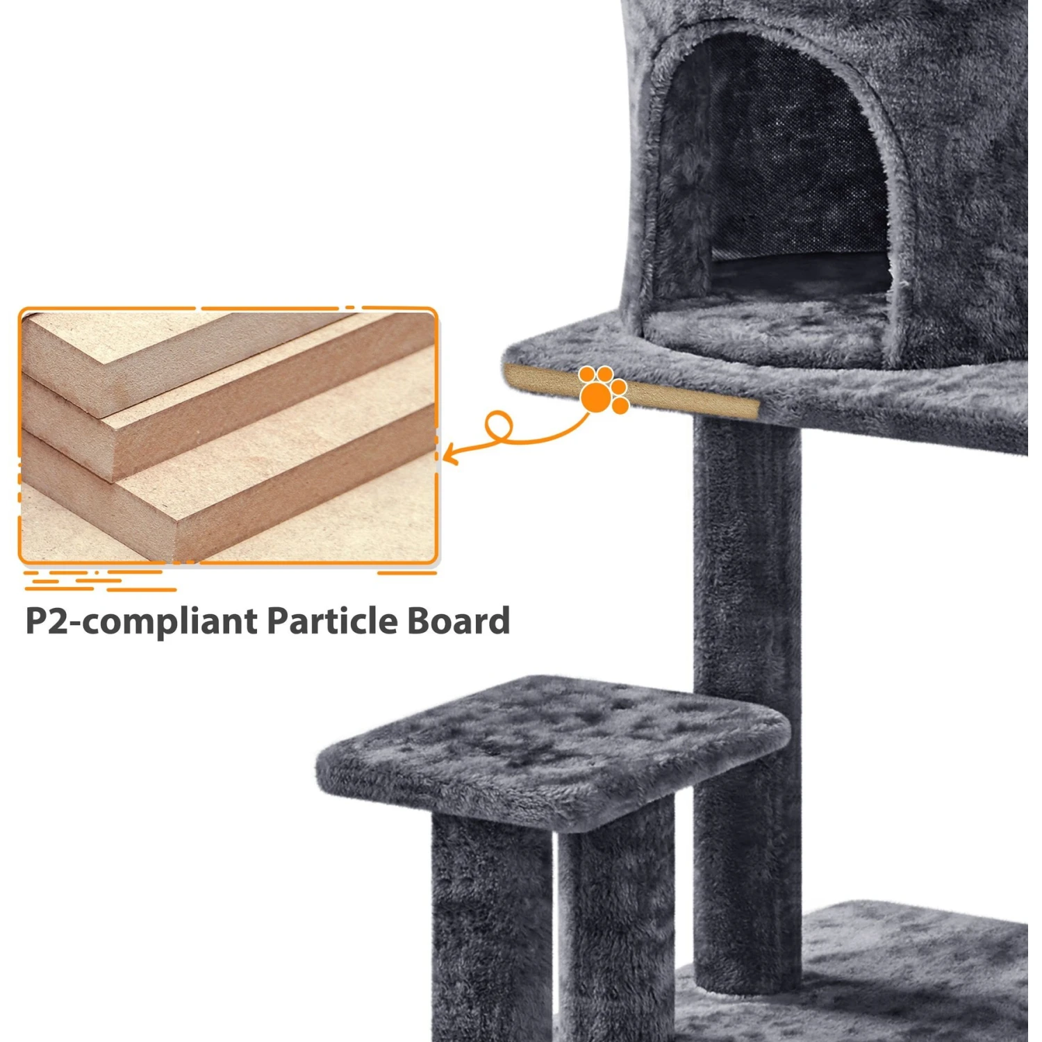 - The cushioned top perch with foam edging, fluffy condo, extended platform and comfy basket are paw-fect spots for catnaps.
