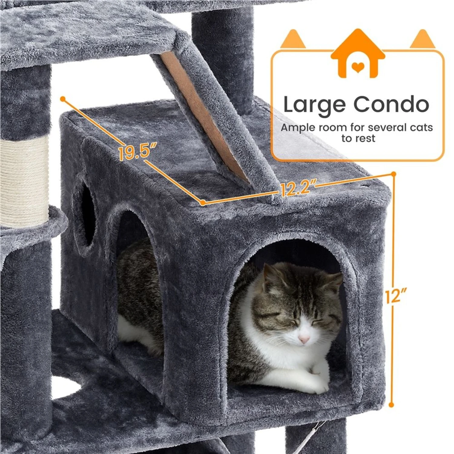 - The included safety strap lets you attach the cat tree to the wall for added stability.