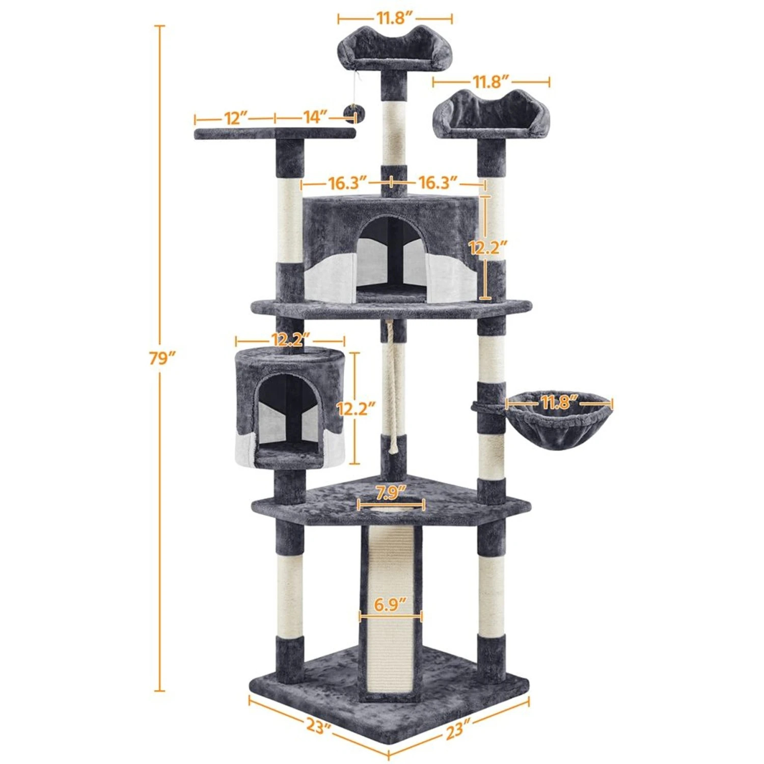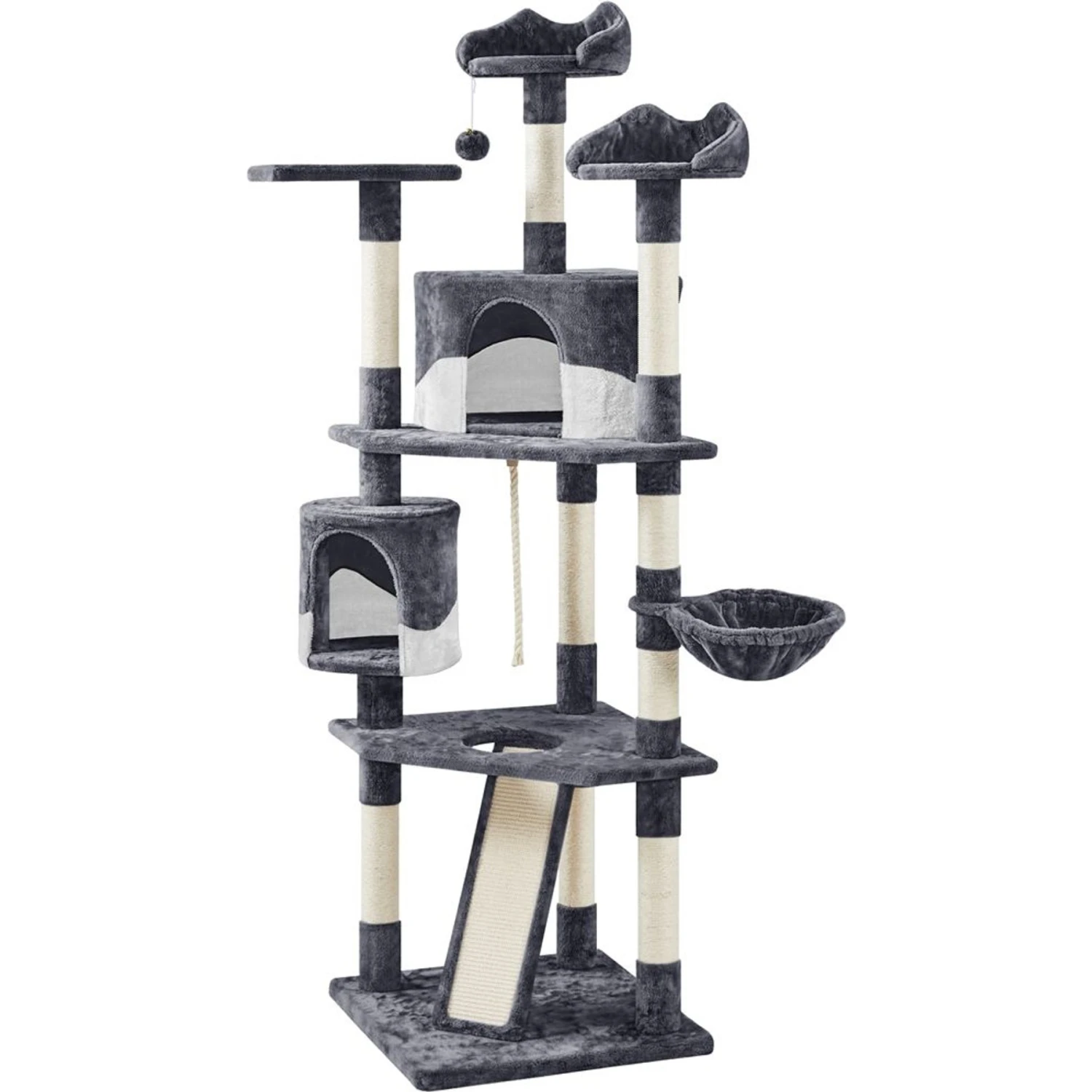 Yaheetech 79-in Plush Cat Tree & Condo, Dark Gray/White
